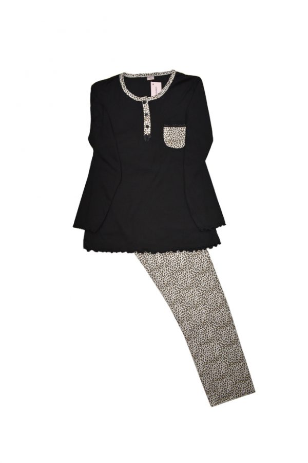 Πυτζάμα Βαμβακερή Με Μακρύ Μανίκι Μαύρη 312215