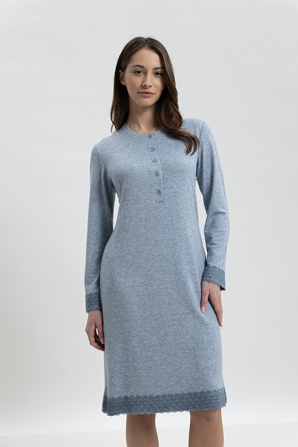Νυχτικιά κασμίρ με μακρύ μανίκι σε μπεζ χρώμα, εξαιρετικής ποιότητας. Ελληνικής εταιρείας Giota. Σύνθεση 59% κασμίρ- 21% πολυεστέρας- 20% νάυλον.