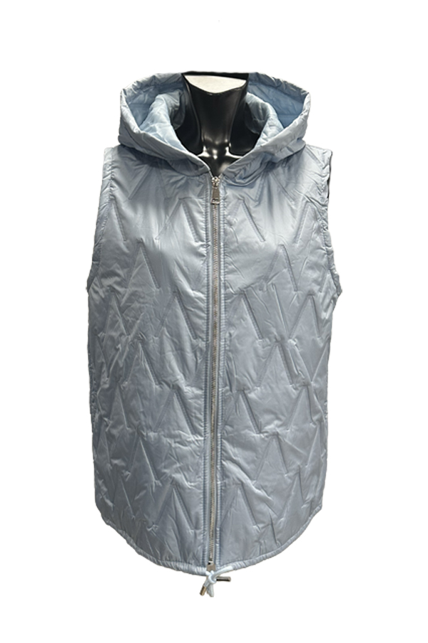 Αμάνικο μπουφάν γυναικείο σε σιέλ χρώμα, με αποσπώμενη κουκούλα και τσέπες. Ελαφρύ και άνετο, ιδανικό για άνοιξη- καλοκαίρι.