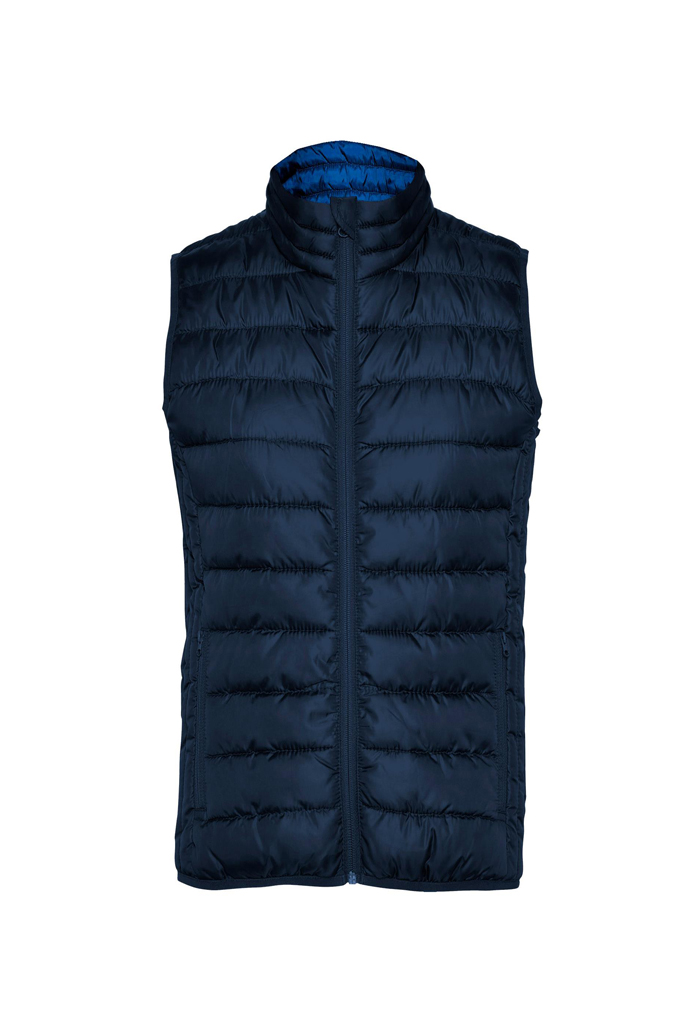 Αμάνικο μπουφάν γυναικείο σε μπλε χρώμα. Το φερμουάρ διαθέτει προστατευτικό πηγουνιού. Με εσωτερική φόδρα, δύο μπροστινές τσέπες με φερμουάρ και ελαστικό ρέλι στο τελίωμα. Ελαφρύ και ανάλαφρο ρούχο, πουπουλένιας υφής. Σύνθεση 100% πολυεστέρας.