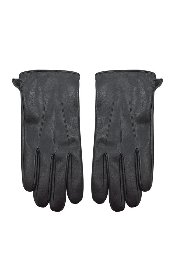 Ανδρικά γάντια σε μαύρο χρώμα από συνθετικό δέρμα, με ραφές, 100% PU.