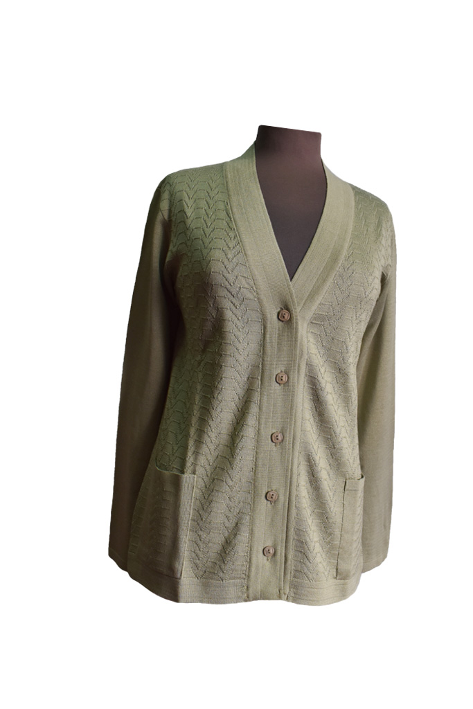 Γυναικεία ζακέτα μερσεριζέ με μακρύ μανίκι σε φυτρί χρώμα σε V. Ελληνικής εταιρείας, Ευτυχία, με απίστευτη ποιότητα και καταπληκτική εφαρμογή. Έχει διακριτικό πλεκτό σχέδιο στο μπροστινό μέρος. Ιδανική και για καλή χρήση για όλες τις εποχές!