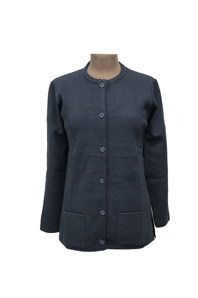 Γυναικεία κλασική ζακέτα σε μπλε χρώμα, ελληνικής εταιρείας. Εξαιρετική ποιότητα, μονόχρωμη ζακέτα απλή, με τσέπες, με ιδιαίτερη λαιμόκοψη. Ιδανική να φορεθεί και για πιο καλές εμφανίσεις. Σύνθεση 100% ακρυλικό.