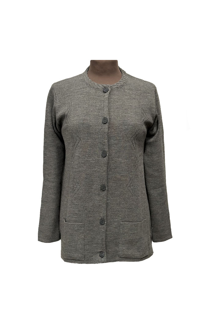 Γυναικεία κλασική ζακέτα σε γκρι χρώμα, ελληνικής εταιρείας. Εξαιρετική ποιότητα, μονόχρωμη ζακέτα απλή, με τσέπες, με ιδιαίτερη λαιμόκοψη. Ιδανική να φορεθεί και για πιο καλές εμφανίσεις. Σύνθεση 100% ακρυλικό.