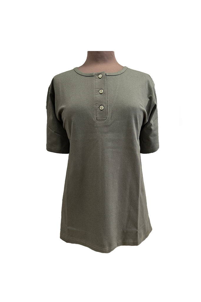 Κλασική γυναικεία μπλούζα, με κοντό μανίκι και τρία κουμπιά, σε λαδί χρώμα. Εξαιρετική ποιότητα και εφαρμογή, ιδανική για καθημερινή χρήση. Σύνθεση βαμβάκι 100%. Ελληνικής εταιρείας.