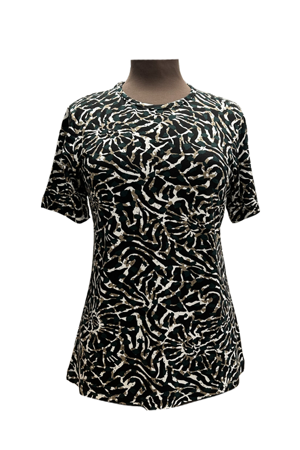 Μπλούζα γυναικεία βισκόζη με κοντό μανίκι σε απόχρωση εμπριμέ πράσινο. Δροσερή με υπέροχη εφαρμογή, ιδανική για καθημερινή χρήση. Σύνθεση 92% βισκόζη- 8% ελαστάνη.