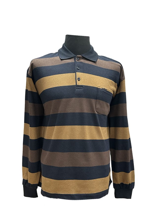 Μπλούζα αντρική πικέ με baby φούτερ, με γιακά και μία τσέπη με ρίγες σε απόχρωση κάμελ, μπλε και γκρι. Ιδανική για καθημερινή χρήση. Σύνθεση 70% βαμβάκι- 30% βισκόζη.