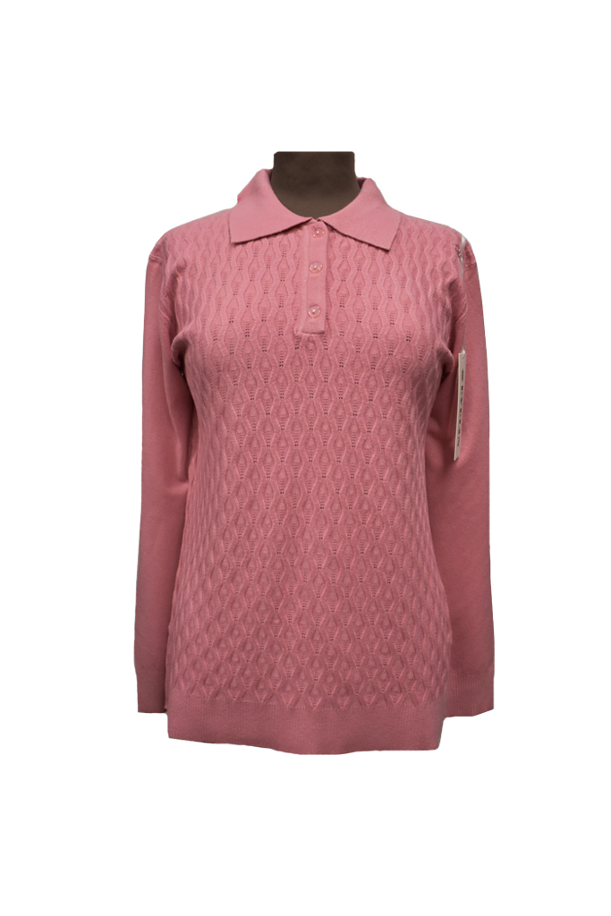 Γυναικεία μπλούζα σε ροζ χρώμα με γιακά και τρία κουμπάκια, με διακριτικά πλεκτά σχέδια στο μπροστινό μέρος. Ιδανική για καθημερινή χρήση με ύφασμα μαλακό και ζεστό πλεκτό. Σύνθεση 27% μοντάλ- 19% βισκόζ- 25% βαμβάκι- 15% πολυαμίδιο- 14% ελαστάνη.