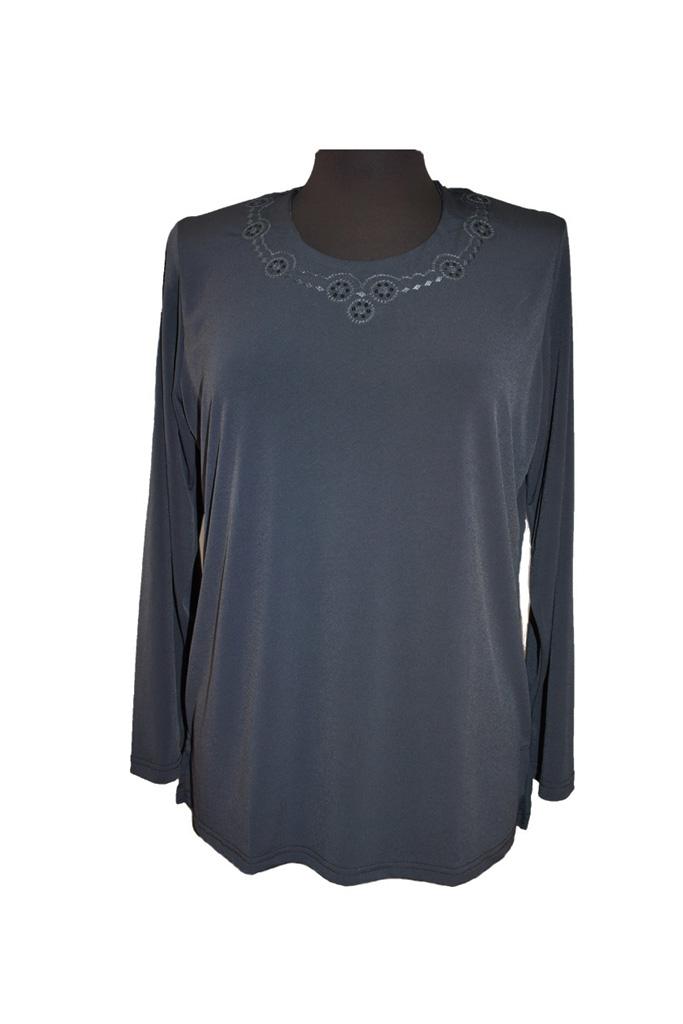 Γυναικεία μπλούζα καλή σε χρώμα γκρι σκούρο, ύφασμα σούπερ ζέρσεϊ, ελληνικής εταιρείας (VENTURO), άριστης ποιότητας, με πολύ καλή εφαρμογή και βάτες. Ιδανική για καλές εμφανίσεις.