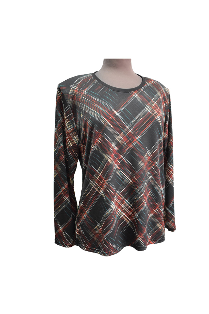 Γυναικεία μπλούζα σε ύφασμα κρεπ, με μακρύ μανίκι, σε εμπριμέ σχέδιο μαύρο με ρίγες σε απόχρωση μπεζ με μπορντό! Εντυπωσιάστε με μια μπλούζα σαν και αυτή! Εξαιρετικής ποιότητας και εφαρμογής, ελληνικής εταιρείας Venturo. Σύνθεση 95% πολυεστέρας- 5% ελαστάνη.