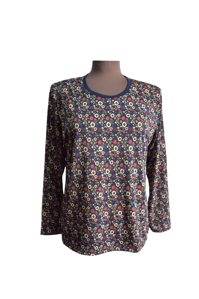 Γυναικεία μπλούζα σε ύφασμα κρεπ, με μακρύ μανίκι, σε εμπριμέ σχέδιο με μπλε λουλουδάκια μπροστά και πίσω! Εντυπωσιάστε με μια μπλούζα σαν και αυτή! Εξαιρετικής ποιότητας και εφαρμογής, ελληνικής εταιρείας Venturo. Σύνθεση 95% πολυεστέρας- 5% ελαστάνη.
