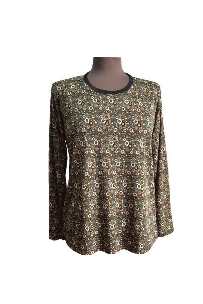 Γυναικεία μπλούζα σε ύφασμα κρεπ, με μακρύ μανίκι, σε εμπριμέ σχέδιο με πράσινα λουλουδάκια μπροστά και πίσω! Εντυπωσιάστε με μια μπλούζα σαν και αυτή! Εξαιρετικής ποιότητας και εφαρμογής, ελληνικής εταιρείας Venturo. Σύνθεση 95% πολυεστέρας- 5% ελαστάνη.