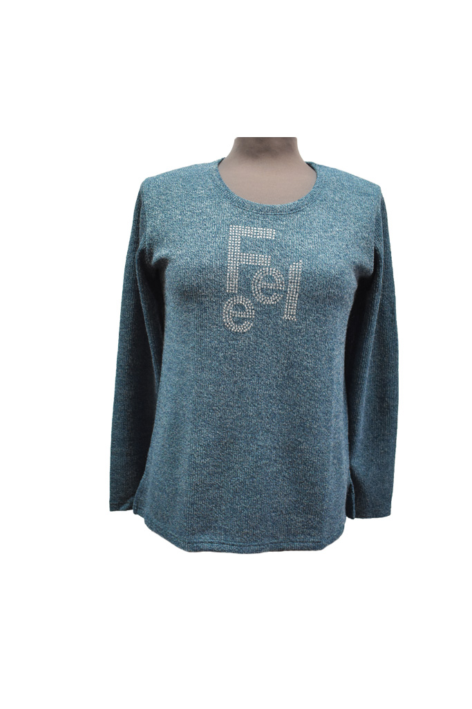 Γυναικεία μπλούζα σε πλεκτό πολυεστέρα, σε χρώμα πετρόλ με στρας. Ιδανική και για καλές εμφανίσεις, απίστευτη ποιότητα και εφαρμογή, ελληνικής εταιρείας Venturo. Σύνθεση 95% πολυεστέρας- 5% spandex.
