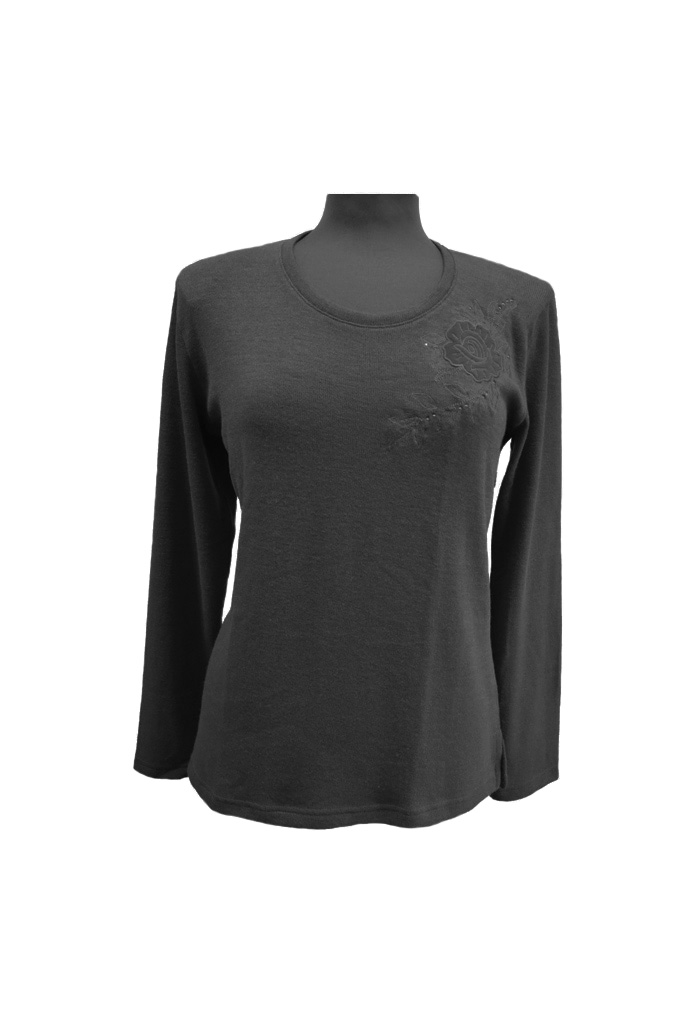 Γυναικεία μπλούζα σε πλεκτό πολυεστέρα, σε μαύρο χρώμα με κεντητό λουλούδι. Ιδανική και για καλές εμφανίσεις, απίστευτη ποιότητα και εφαρμογή, ελληνικής εταιρείας Venturo. Σύνθεση 80% πολυεστέρας- 15%rayon- 5% spandex.