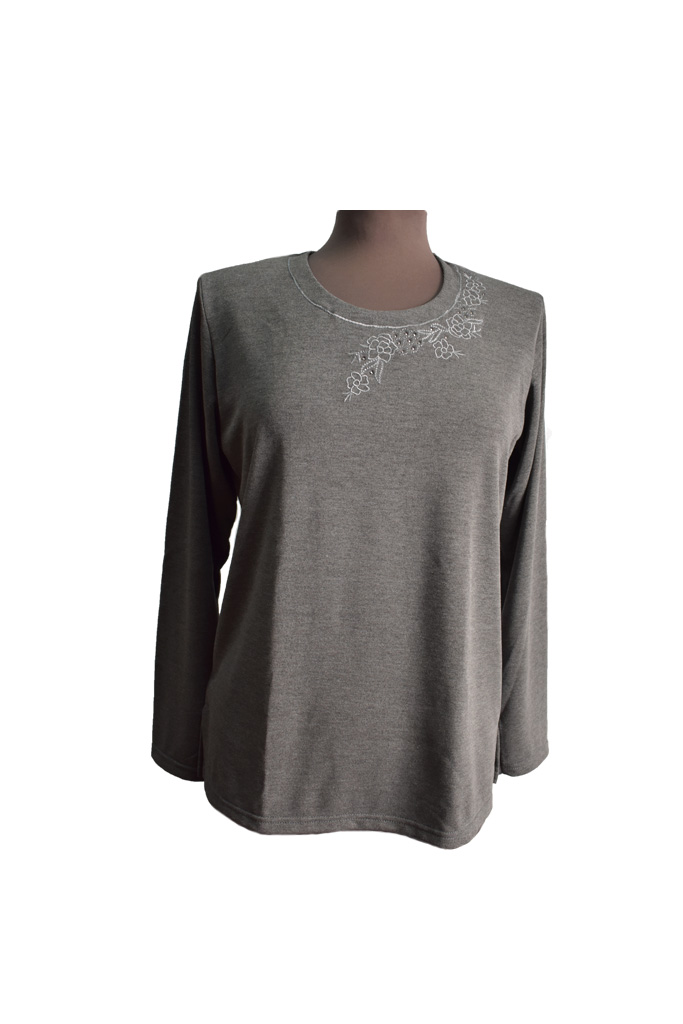 Γυναικεία μπλούζα σε γκρι χρώμα, με μακρύ μανίκι, πλεκτή, ελληνικής εταιρείας Venturo. Άριστης ποιότητας, με εξαιρετική εφαρμογή. Σύνθεση 95% βισκόζ, 5% ελαστάνη.