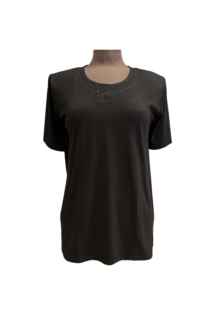 Γυναικεία μπλούζα σε μαύρο χρώμα με κοντό μανίκι, σε ύφασμα βισκόζ, ελληνικής εταιρείας Venturo. Άριστης ποιότητας, με εξαιρετική εφαρμογή και βάτες. Σύνθεση 95% βισκόζ, 5% ελαστάνη.