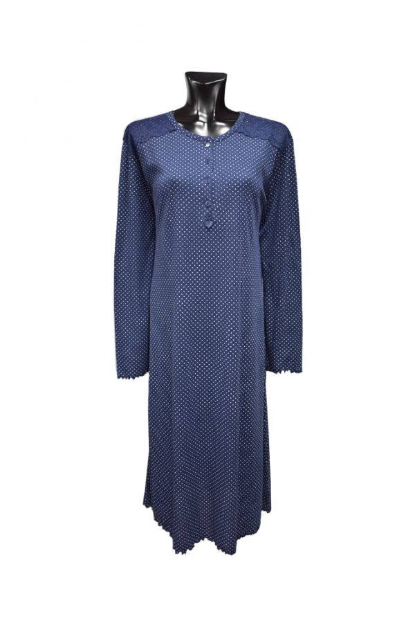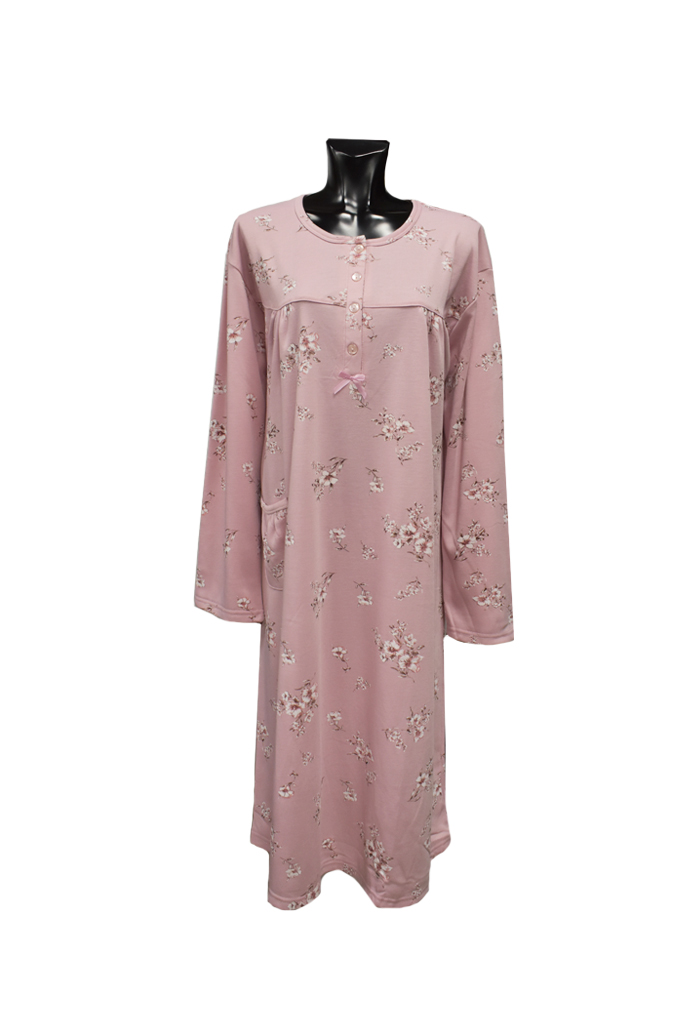 Νυχτικιά βαμβακερή με μακρύ μανίκι και επένδυση σε ροζ χρώμα με λουλούδια. Ιδανική για εύσωμες κυρίες. Σύνθεση 95% βαμβακερή- 5% πολυεστέρας.