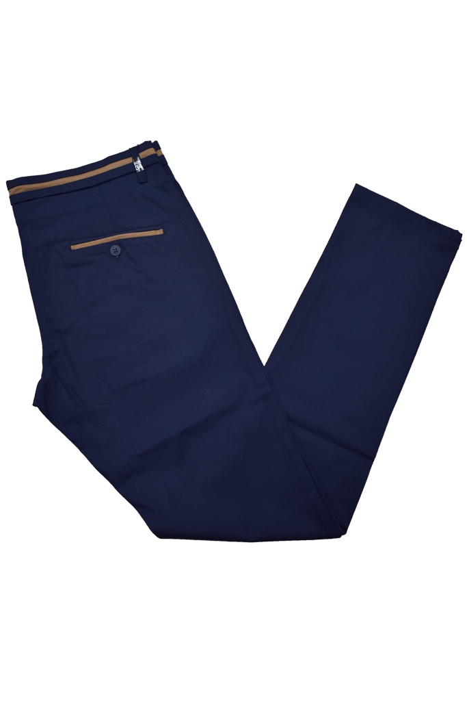 Αντρικό παντελόνι chino σε χρώμα μπλε σκούρο με ταμπά λεπτομέρειες. Εξαιρετική ποιότητα και εφαρμογή, ελληνικής εταιρείας Hacker. Ιδανικό για κομψές εμφανίσεις. Σύνθεση 98% βαμβάκι- 2% λύκρα.