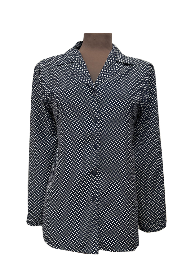 Κλασικό πουκάμισο γυναικείο σε κρεπ ύφασμα σε χρώμα μαύρο με σχέδια με μακρύ μανίκι. Διαθέτει πολύ καλή εφαρμογή και ποιότητα, ελληνικής εταιρείας.