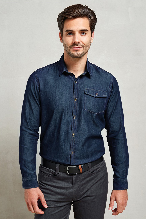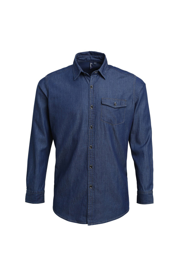Τζιν πουκάμισο ανδρικό σε μπλε χρώμα με μία τσέπη. Εξαιρετική ποιότητα και εφαρμογή. Σύνθεση 100% Βαμβάκι Ringspun.