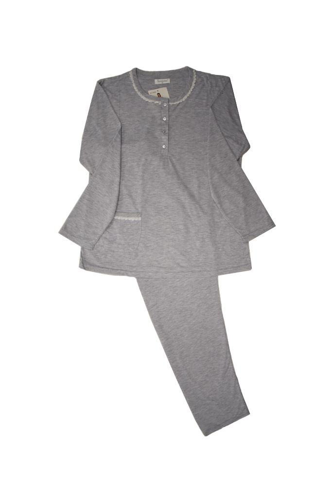 Βαμβακερή πυτζάμα με μακρύ μανίκι σε γκρι χρώμα. Σύνθεση 95% βαμβάκι- 5% πολυεστέρας.