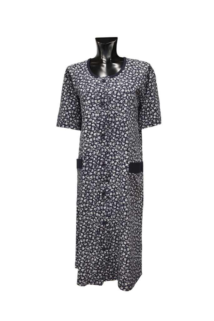 Κλασική ρόμπα με κοντό μανίκι και τσέπες σε μπλε χρώμα λευκά λουλούδια, βαμβακερή 100%, ελληνικής εταιρείας (ΑΛΊΝΑ). Εξαιρετικής ποιότητας, ΔΕΝ φεγγίζει! Ιδανική για καθημερινή χρήση. Κομψή και άνετη.