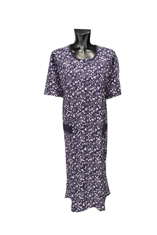 Κλασική ρόμπα με κοντό μανίκι και τσέπες σε μωβ απόχρωση με λευκά λουλούδια, βαμβακερή 100%, ελληνικής εταιρείας (ΑΛΊΝΑ). Εξαιρετικής ποιότητας, ΔΕΝ φεγγίζει! Ιδανική για καθημερινή χρήση. Κομψή και άνετη.