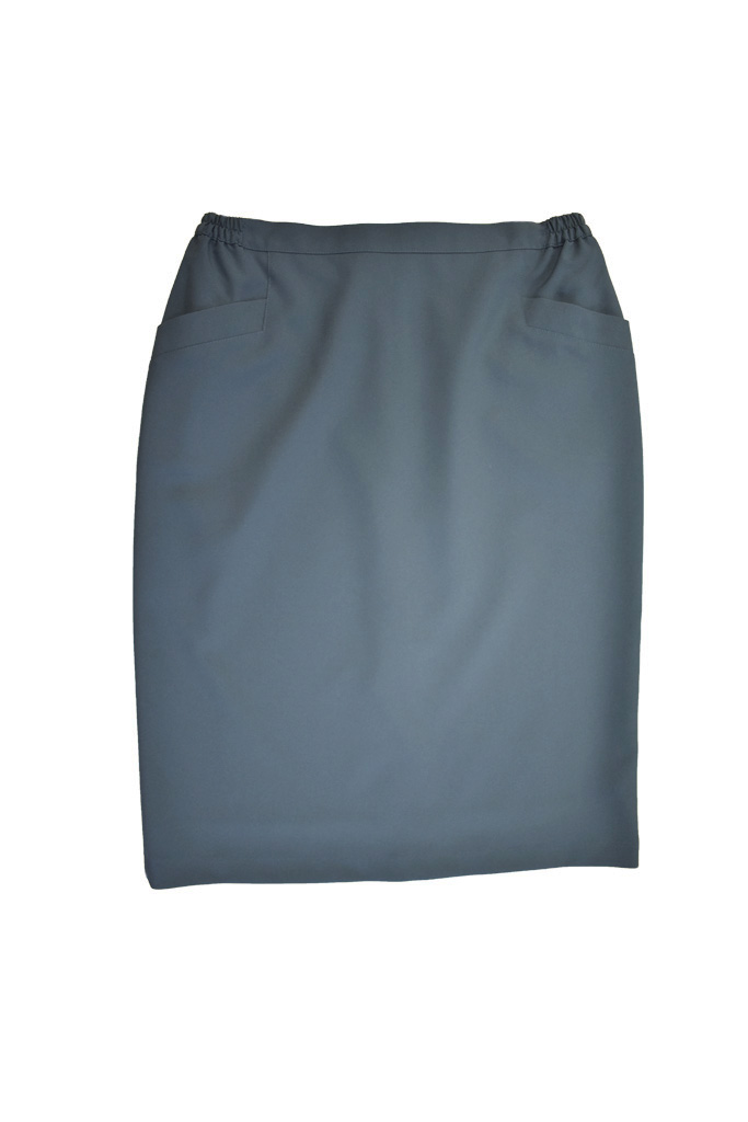 Κλασική φούστα καλοκαιρινή σε γκρι χρώμα, σε ευθεία γραμμή με λάστιχο στα πλαϊνά και τσέπες. Πολύ καλή εφαρμογή, ιδανική για κάθε τύπο σώματος. Κομψή και άνετη. Ελληνικής εταιρείας, σε ύφασμα τεριλέν, άριστης ποιότητα.