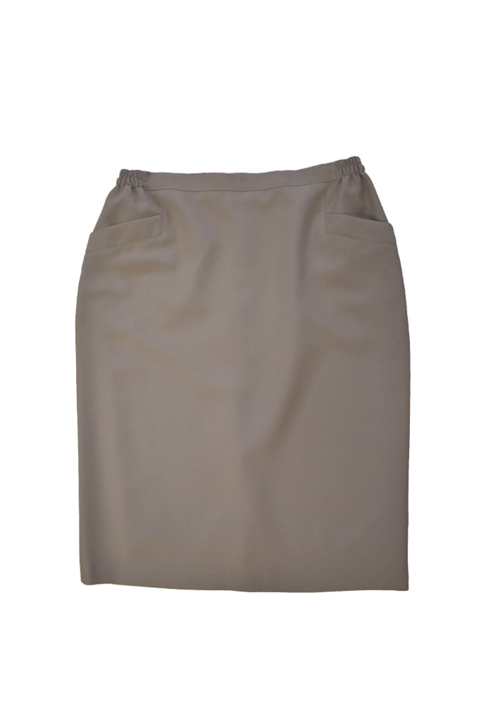 Κλασική φούστα καλοκαιρινή σε χρώμα πούρο, σε ευθεία γραμμή με λάστιχο στα πλαϊνά και τσέπες. Πολύ καλή εφαρμογή, ιδανική για κάθε τύπο σώματος. Κομψή και άνετη. Ελληνικής εταιρείας, σε ύφασμα τεριλέν, άριστης ποιότητα.