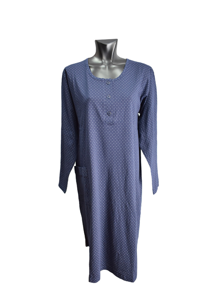 Κλασικό φόρεμα με μακρύ μανίκι και τσέπη σε χρώμα μπλε σκούρο με διακριτικά λευκά λουλούδια, βαμβακερό 100%, ελληνικής εταιρείας (ΑΛΊΝΑ). Εξαιρετικής ποιότητας, ΔΕΝ φεγγίζει! Ιδανικό για καθημερινή χρήση. Κομψό και άνετο. Διαθέτει τρία κουμπιά και δύο διακριτικά ανοίγματα στα πλαϊνά (ένα σε κάθε μεριά) για άνετο περπάτημα.