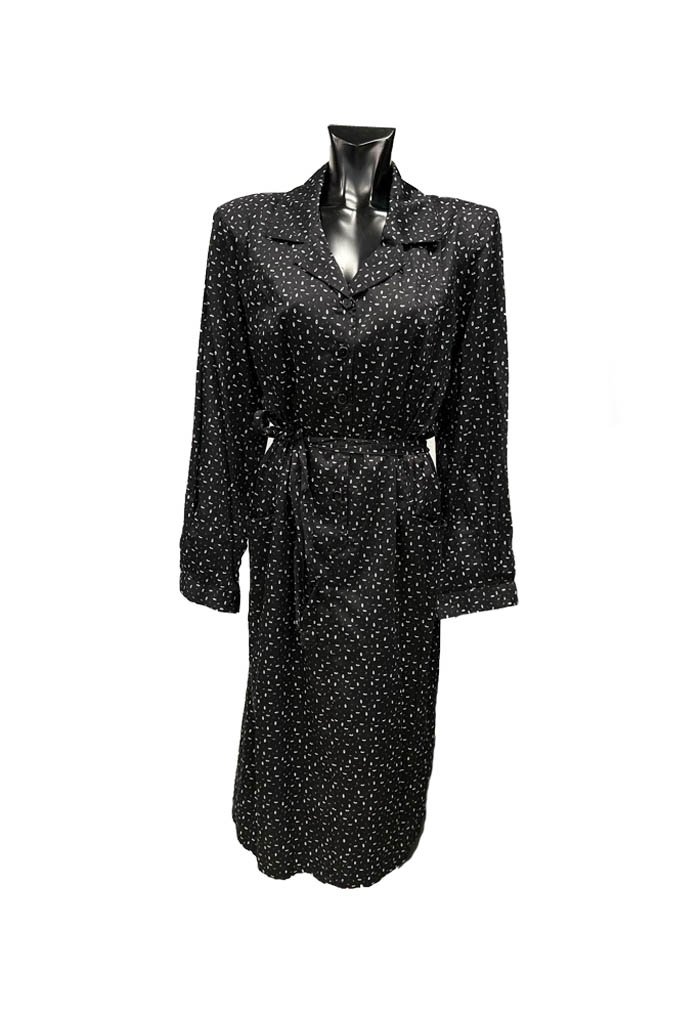 Κλασικό φόρεμα βαμβακοσατέν, εμπριμέ, σε μαύρη απόχρωση με σχέδια, με μακρύ μανίκι, τσέπες και ζώνη. Ιδανικό να φορεθεί για τις πιο καλές εμφανίσεις σας! Ελληνικής εταιρείας. Σύνθεση 100% βαμβάκι.