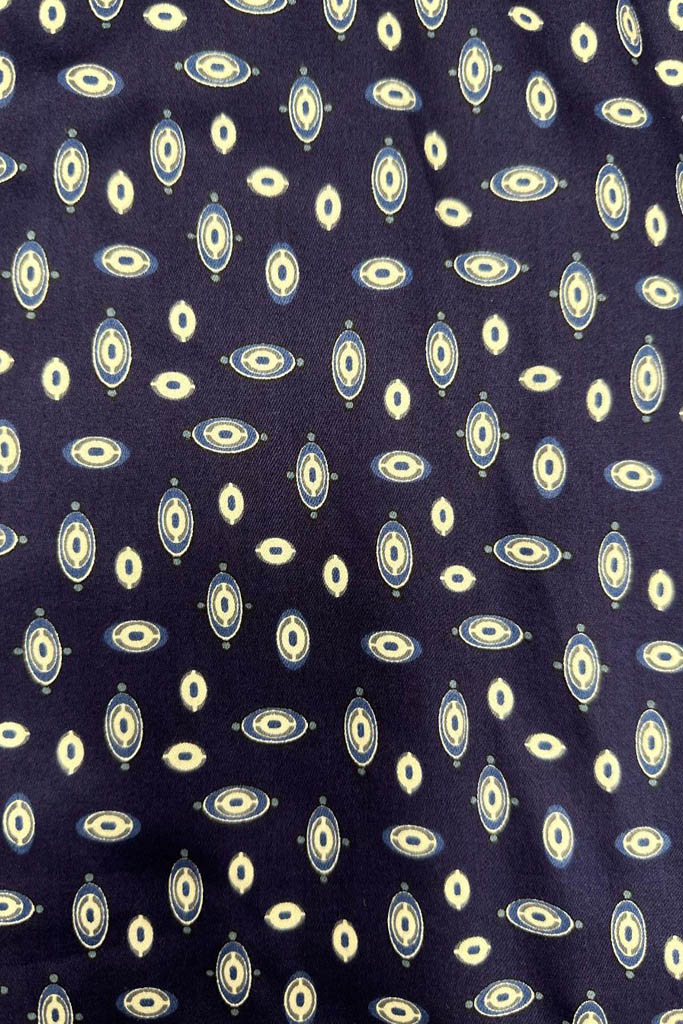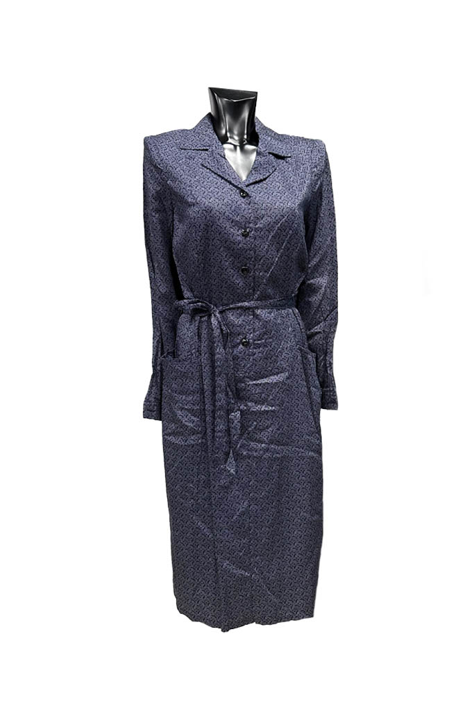 Κλασικό φόρεμα βαμβακοσατέν, εμπριμέ, σε μπλε απόχρωση με σχέδια, με μακρύ μανίκι, τσέπες και ζώνη. Ιδανικό να φορεθεί για τις πιο καλές εμφανίσεις σας! Ελληνικής εταιρείας. Σύνθεση 100% βαμβάκι.